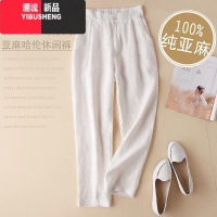YIBUSHENG亚麻小脚裤季新款休闲裤女宽松显瘦麻料直筒垂感九分棉麻哈伦裤