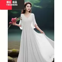 YIBUSHENG多巴胺穿搭季新款雪纺玫红色跳舞大摆连衣裙海边度假拍照长裙仙
