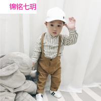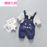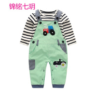 锦铭七玥2018春秋款男宝宝套装条纹长袖T恤汽车卡通背带裤婴童连体爬行服