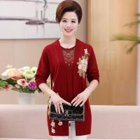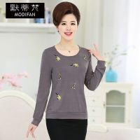 默蒂梵2017年春装新款妈妈装圆领长袖打底衫中年妇女上衣休闲T恤