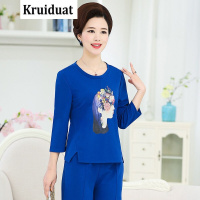 Kruidvat2017春装新款中年妇女妈妈时尚休闲服两件套装中老年女上衣七分裤Z041