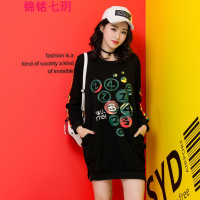 锦铭七玥2018春装新款大码女装时尚休闲长款卫衣 胖MM棉女上衣