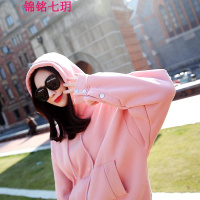 锦铭七玥2018春装新款韩版学生连帽短款宽松套头色卫衣女上衣休闲外套潮