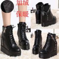 马丁靴女短靴2017新款秋冬百搭性感坡跟厚底棉鞋女冬鞋内增高女鞋