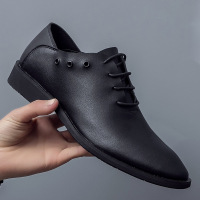 秋季男士商务休闲皮鞋英伦尖头软面皮韩版正装透气软底内增高