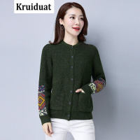 Kruidvat2017春季新款韩版时尚袖子贴布针织衫开衫修身单排扣女式春毛衣M7