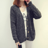 薇侣2017新品秋装女粗毛线棒针单排扣毛衣开衫宽松显瘦保暖针织外套