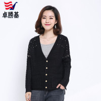 卓勝基 短款毛衣女开衫单排扣韩版大码宽松V领上衣春季女装针织衫外套潮 黑色 均码