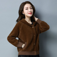 秋冬新款韩版时尚休闲纯色双口袋单排扣毛衣连帽加厚开衫外套