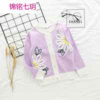 锦铭七玥包芯纱单层2018春装新款花朵儿童提花公主单排扣女童毛衣针织开衫