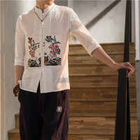 中国风男士春夏立领大码盘扣七分袖上衣唐装复古简约民族风衬衫潮
