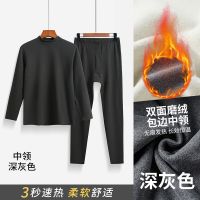 男士双面德绒保暖内衣套装v领圆领加绒秋衣秋裤棉毛衫