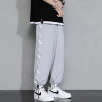 直筒裤男春夏季新款薄款男生时尚垂感抽绳束脚字母裤运动长裤