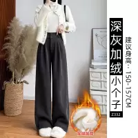 灰色灯芯绒西装裤女新款秋冬季小个子高腰垂感加厚直筒阔腿裤