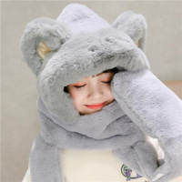 儿童帽子冬季保暖女童毛绒帽围巾一体帽新款挡风口罩手套男宝