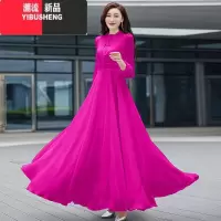 YIBUSHENG演出双层大摆跳舞长裙长袖雪纺连衣裙沙滩裙大码三亚旅游拍视频秋
