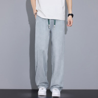 夏季男士抽绳牛仔裤 浅蓝天丝凉感面料 宽松阔腿 垂坠感透气长裤