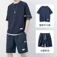 华夫格短袖套装男士港风宽松大码多色可选时尚潮流两件套