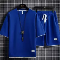 华夫格运动休闲套装男士港风宽松假两件短袖短裤_343