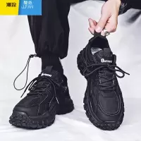 聚范男鞋防水防滑鞋透气潮鞋秋季休闲鞋软底跑步鞋黑色皮面加绒运动鞋
