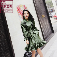 2017秋装新款女装欧美系带收腰鱼尾裙女重工钉珠长袖连衣裙