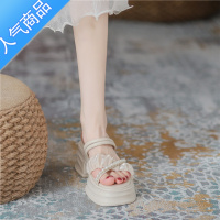 SUNTEK露趾厚底松糕一字带凉鞋女2023新款夏季丝带中跟粗跟罗马鞋子