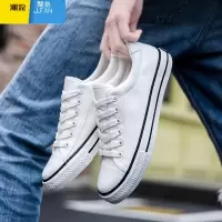 聚范白色帆布鞋男韩版休闲鞋低帮平底布鞋学生球鞋青少年男鞋子