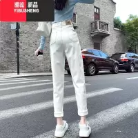 YIBUSHENG白色哈伦牛仔裤女2024年春新款高腰修身显瘦直筒九分老爹休闲裤