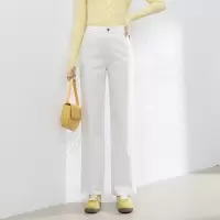 米白色牛仔直筒裤女秋季高腰宽松弹力柔软九分阔腿裤8131