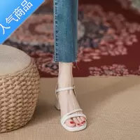 SUNTEK羊皮软底凉鞋女2023夏新款法式白色绝美中粗跟仙女风一字带高跟鞋