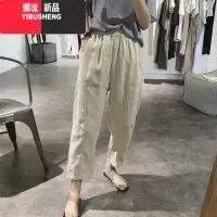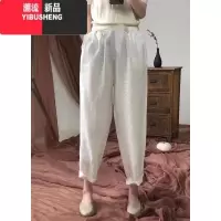 YIBUSHENG七分棉麻裤女薄款高腰大码胖mm休闲裤显瘦小个子亚麻八分哈伦裤