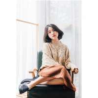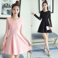 YIBUSHENG波点长袖衬衫裙甜美裙子女季新款气质短裙宽松小个子日系连衣裙