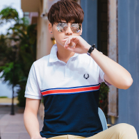 夏季新款珠地棉短袖T恤男翻领宽松POLO衫男士拼接时尚半袖体恤潮CYMMYJL