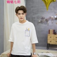 锦铭七玥春夏男式T恤圆领宽松短袖针织衫男时尚休闲五分袖青日系潮半袖