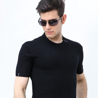 2017新款男士秋季短袖T恤时尚圆领纯羊毛针织衫保暖打底衫秋冬装