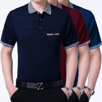 新款男士短袖翻领T恤中年针织衫条纹商务男装夏季半袖爸爸装