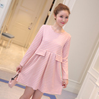 薇侣2017新品实拍孕妇装秋冬装新款长袖棉条纹宽松连衣裙
