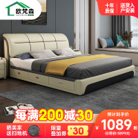 欧梵森 意式轻奢真皮床双人主卧婚床1.8米大床软包储物床皮艺床现代简约卧室榻榻米双人床