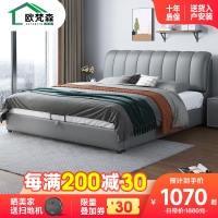 欧梵森 轻奢真皮床北欧欧式主卧双人床单人床软床简约卧室家具日式榻榻米软床婚床美式1.8米皮床现代简约