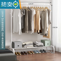敬平衣架家用落地挂衣架简约现代卧室置衣架室内小型晾衣架简易衣帽架 150cm[升级滑轮加长款]白色+双层置物架+双挂钩
