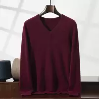 秋冬山羊绒衫男士商务休闲V领简约通勤配衬衫穿平面针织毛衣上衣