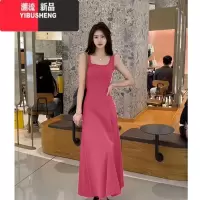 YIBUSHENG红色吊带连衣裙2024新款气质女法式收腰显瘦休闲运动背心长裙