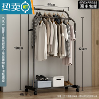 敬平简易衣帽架双杆式晾衣架落地室内房间挂衣架子家用卧室衣服收纳架 80cm-[经典款]黑色双杆+单层置物杆+滑轮底座