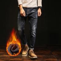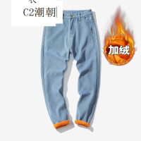 潮胖哥加肥加大码男2017秋冬加绒加厚保暖日系哈伦小脚弹力牛仔裤