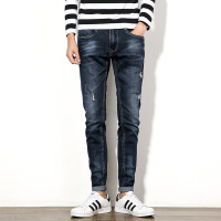 莞馨(wanxin)春秋季弹力小脚牛仔裤男青年加肥加大码潮胖男裤日系百搭破洞长裤
