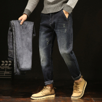 秋冬季潮男宽松大码加绒加厚牛仔裤男胖人粗腿显瘦哈伦长裤子小脚