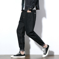 加厚毛巾底潮胖大码男装抽绳牛仔裤宽松小脚加肥加大胖子哈伦裤子