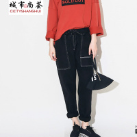 YIBUSHENG复古工装阔腿裤女04季新款高腰抽绳宽松休闲裤显瘦束脚运动裤