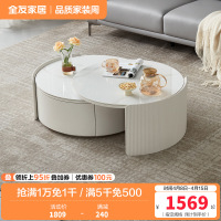 全友家居代简约可伸缩圆茶几奶油风双台面可选客厅家用茶几小户型茶桌边几