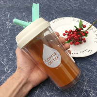 男女学生折叠吸管杯成人果汁奶茶杯双层隔热随手塑料水杯